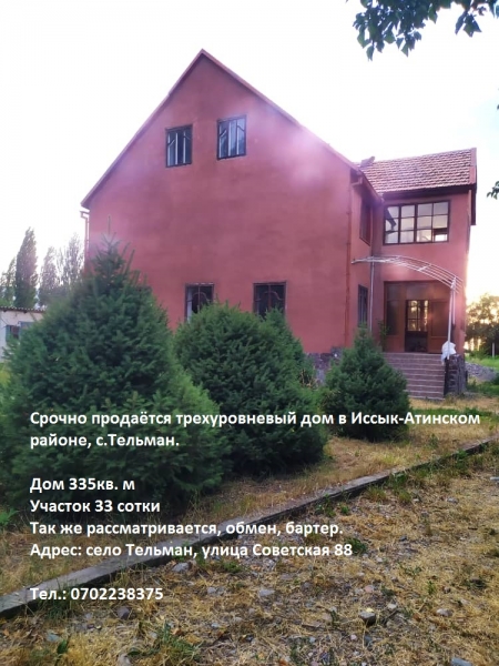 Срочно продаётся трехуровневый дом в Иссык-Атинском районе, с. Тельман.