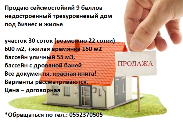 Продаю сейсмостойкий 9 баллов недостроенный трехуровневый дом