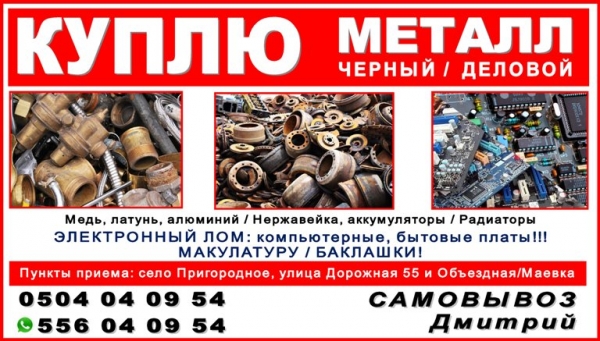 На постоянной основе приобретаем лом черных металлов по максимально высоким ценам! Нам можно сдать на металлолом: — Медь, латунь, алюминий; — Чугун; — Нержавейка, алюминиевая посуда. — Радиаторы; — ЭЛЕКТРОННЫЙ ЛОМ: компьютерные, бытовые платы! ! ! — Макулатуру, баклашки! Закупаем деловой лом. Работаем ежедневно. Самый оперативный вывоз металлолома в Бишкеке. Пункт приема: село Пригородное, улица Дорожная 55 и Объездная/Маевка. А также есть самовывоз