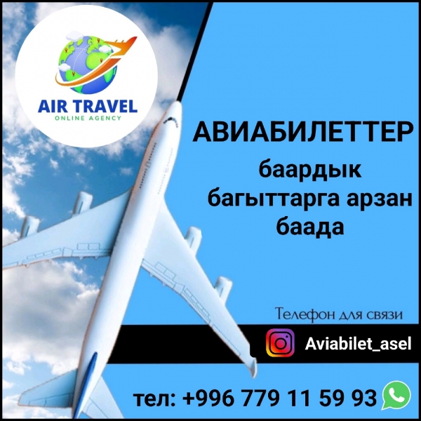 Авиабилеттер баардык багыттарга арзан баада. Тел/WhatsApp: +996 779 11 59 93