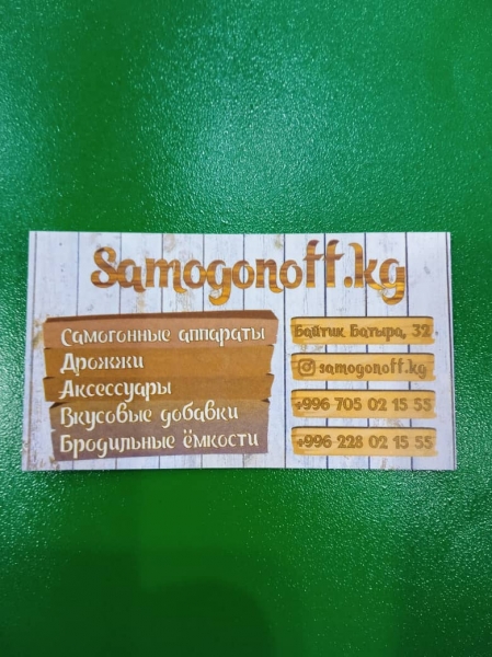 Продаю: Самогонные аппараты; Дрожжи спиртовые; Ингредиенты; Бродильные емкости; Спиртомеры; Комплектующие; Адрес: ул. Байтик-Батыра 32