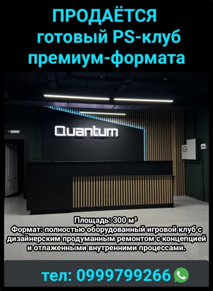 Формат: полностью оборудованный игровой клуб с дизайнерским продуманным ремонтом с концепцией и отлаженными внутренними процессами. Состав бизнеса: 16 новых PlayStation 5