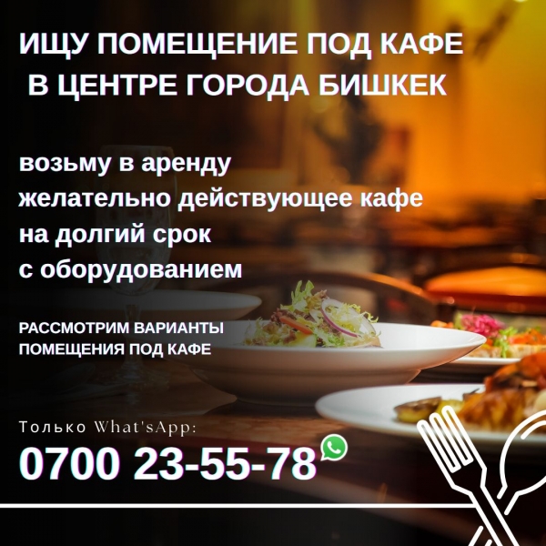 Ищу помещение под кафе в центре города, желательно действующее. На долгий срок! Возьму в аренду действующее кафе, с оборудованием