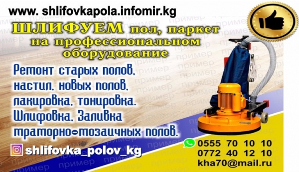 Шлифуем пол, паркет. Шлифуем пол, паркет и лакировка. Монтаж деревянных полов. Ремонт. Шлифовка под ламинат, краску. А также шлифовка мозаичных и мраморных полов. Тел. : 0555701010, 0772401210