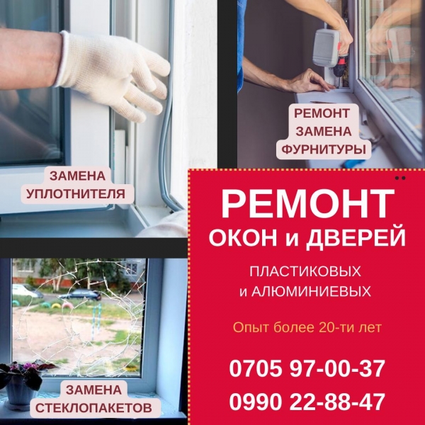 Профессиональный ремонт пластиковых окон в минимальные сроки в удобное для Вас время. Используем в работе качественные материалы, ремонтируем пластиковые окна и двери любых производителей в квартирах, офисах, помещениях коммерческого и производственного сектора. Обладая навыками и запасными деталями, за короткий срок устраним неисправности в работе механизма, пластиковых окон и дверей. Есть все запчасти в наличии! Опыт более 20-ти лет! Тел. : 0705970037, 0990228847