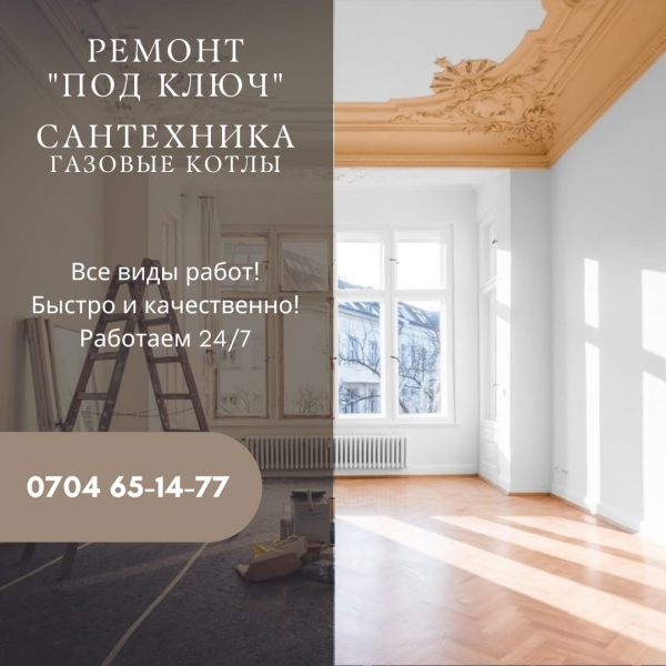 Все виды работы: - Полы, стяжка; - Ламинат, линолеум; - Стены, шпатлевка, обои, покраска; - Откосы, плинтуса; - Галтели, перегородки; - Монтаж, демонтаж; - Гибкий мрамор, штукатурка. Бысто и качественно! Сантехника. Все виды работ: - Подключение трубопрокладки, канализационных труб; - Подключение к септику, к городскому трассу прокладк холодной, горячей воды; - Установка ванной, водонагревателей, унитаза, раковин; - Мелкосрочные работы. Укладка кафеля на санузлы, бани, сауны, уборной. Фартуки для кухни, дорожки, полы. Кухонные, промышленные газовые оборудования. Диагностика, ремонт и устранение неисправностей газовых котлов. Установка горелок, замена термопара, жиглера, фильтров, вытяжек, насосов. Все расходники имеются. Работаем 24/7
