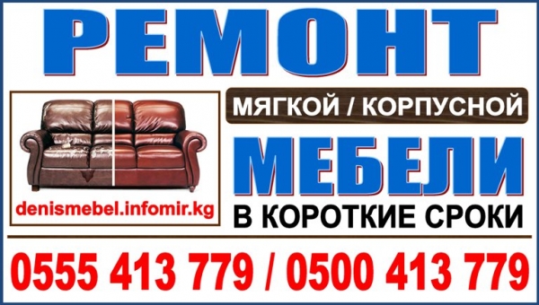 Высококачественный ремонт: - корпусной мебели; - мягкой мебели; - офисной мебели. В короткие сроки. Профессионально! Качественно! От 500 сом. Разборка и сборка мебели по месту. Перетяжка мягкой мебели