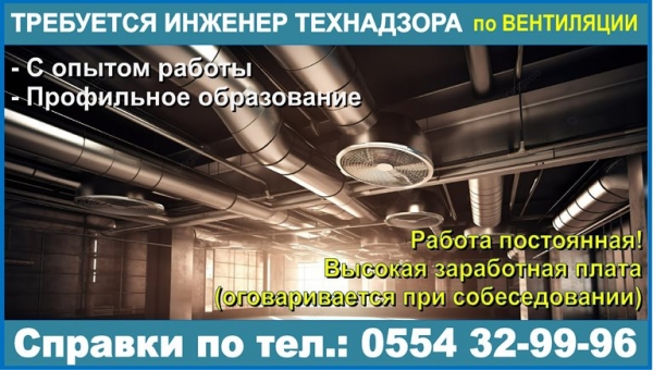 Требуется инженер технодзора по вентиляции В ОсОО "Азон Климат" Отличные условия.
