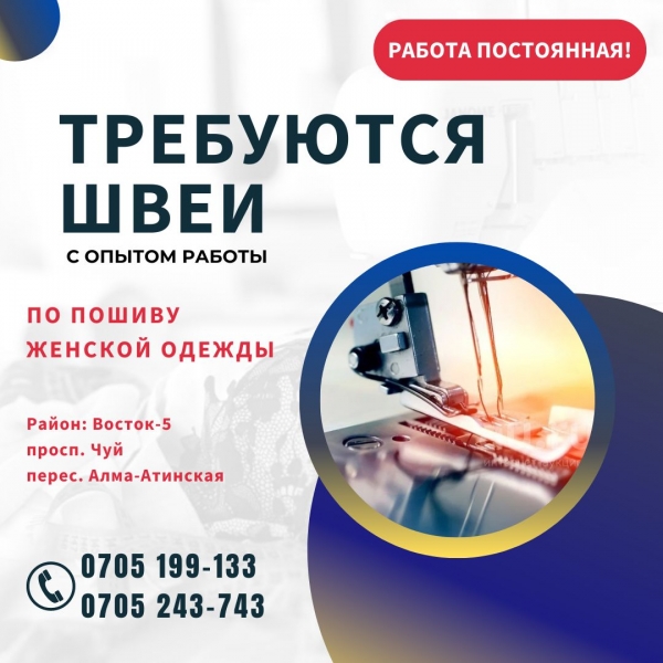 Требуются опытные швеи, район просп. Чуй/Алма-Атинская По пошиву женской одежды Надомники 0705243743